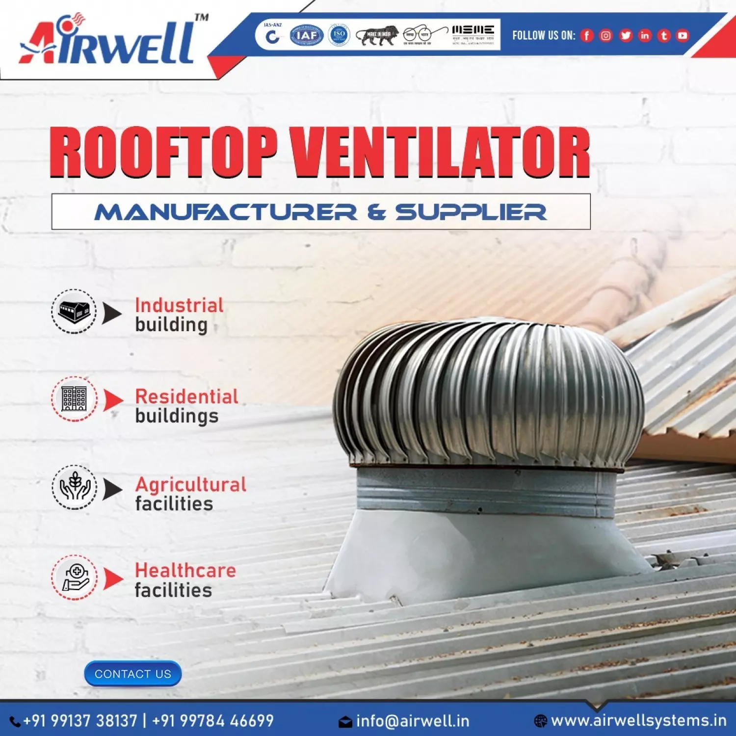 Airwell Systems supplies and manufactures motorized and non-motorized roof ventilators, rooftop exhaust fans, and turbine air ventilators in PAN India.