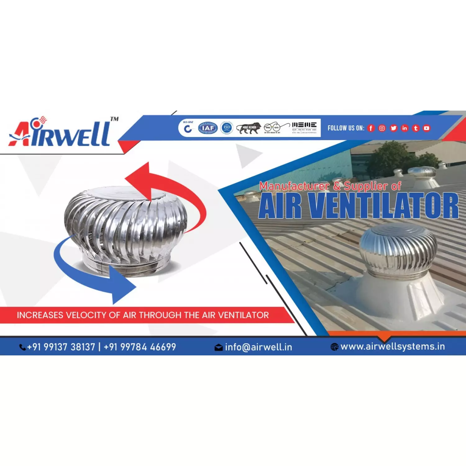 AIRWELL SYSTEMS Powerless Air Ventilator Manufacturer In Vani, Ahmedabad Turbine Ventilators Remove The Heat From Your Building Inducing Currents Of Fresh Air Cooling Your People And The Environment.Ideal To Ventilate Factories, Workshops, Warehouses, Agricultural Applications, Schools, Hostels, Assembly Halls And Other Buildings Which Require Effective And Efficient Ventilation. The Extraction Produces Fresh Cool Breezes Into The Building And Ensures A Cleaner, Cooler Continue