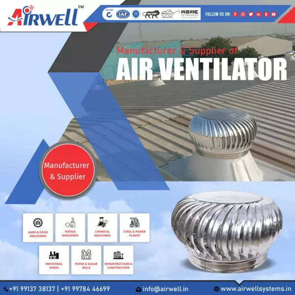 AIRWELL SYSTEMSTurbine Air Ventilator Supplier And Dealer In ChhattisgarhThe Company Manufactures And Supplies Passive Ventilation Devices That, By Using Natural Wind, Extract Hot Air, Humidity, And Pollutants From Industrial And Other Enclosed Spaces.@AIRWELL SYSTEMS #Chhattisgarh #Raipur #Bilaspur #Raigarh #Durg #Ambikapur #Jashpur #Korba #Bhilai #janjgir-Champa #Rajnandgaon #Bhatapara #Roof Air Ventilator #Turbo Roof Ventilator #Motorized Roof Extractor Fan #Power Roof Ventilator #Roof Continue